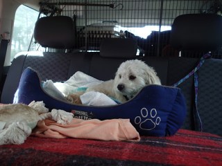 Headed down to Geoff and Joy’s place and to pick our baby up again. Sammy had had a ball playing with other dogs, a trip to the beach where the dog sitter caught some fish and then cooked them up with some pasta for the dogs dinner. Talk about spoilt. We set up camp on a vacant block beside Geoff’s place which backs onto the water. It was great to catch up with them again but unfortunately Joy had a cold and didn’t feel too well. Geoff cooked up a piece of marinated lamb on the BBQ which was enjoyed by all.
