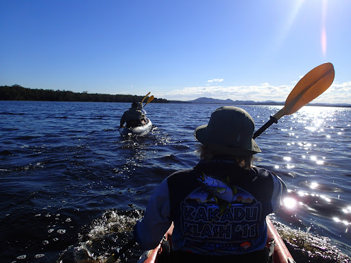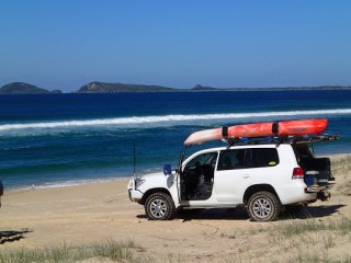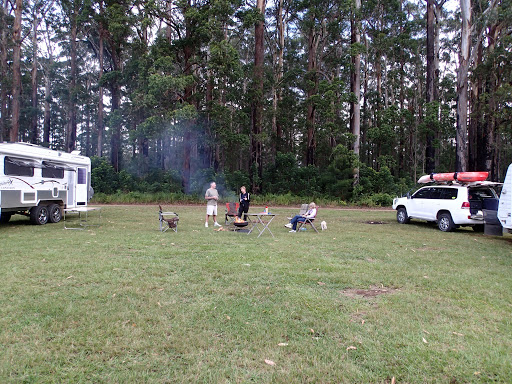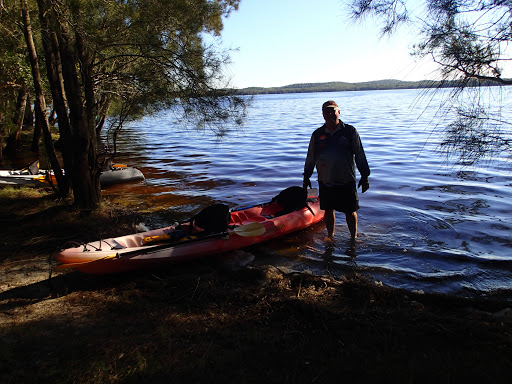 Being a NP we had to drop Sammy off at a dog sitter in Tea Gardens. A very sad moment. It was fairly busy at Mungo Brush as it was still school holidays in NSW but the gremlins (children) weren’t too bad. We paddled about 2 klms to a little beach on the the lake and back on the first day. Very nice and a bit of exercise at last. Day 2 went for a drive to explore other camp areas and look for a fishing spot. I went down a sand track to check out the beach and ended up having to let the tyres down to 12 lb to turn around. It was absolutely beautiful on the beach so we stayed for a couple of hours and had a go at fishing. Craig caught a dart and I scored a slightly undersized bream. After lunch we went for a rainforest walk out of camp and ended up tromping through scrub to try and find a way around the flooded tracks. We eventually returned via the road. A few drinks watching the sun go down over the lake is pretty special here.