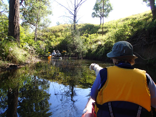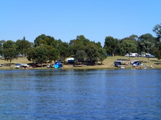 We continued on to Lake Saint Claire near Singleton. It was quite busy here also, but we managed to find a reasonable spot about 50 metres back from the water. Skiing, sailing, fishing & kayaking were the order of the day. We paddled around a ridge and found the peace and quiet of a large bay area where the water was smooth as glass and a small creek wandering off to the base of the mountains. I had a bit of a fish without success, but I don’t think anybody else was having much luck either.